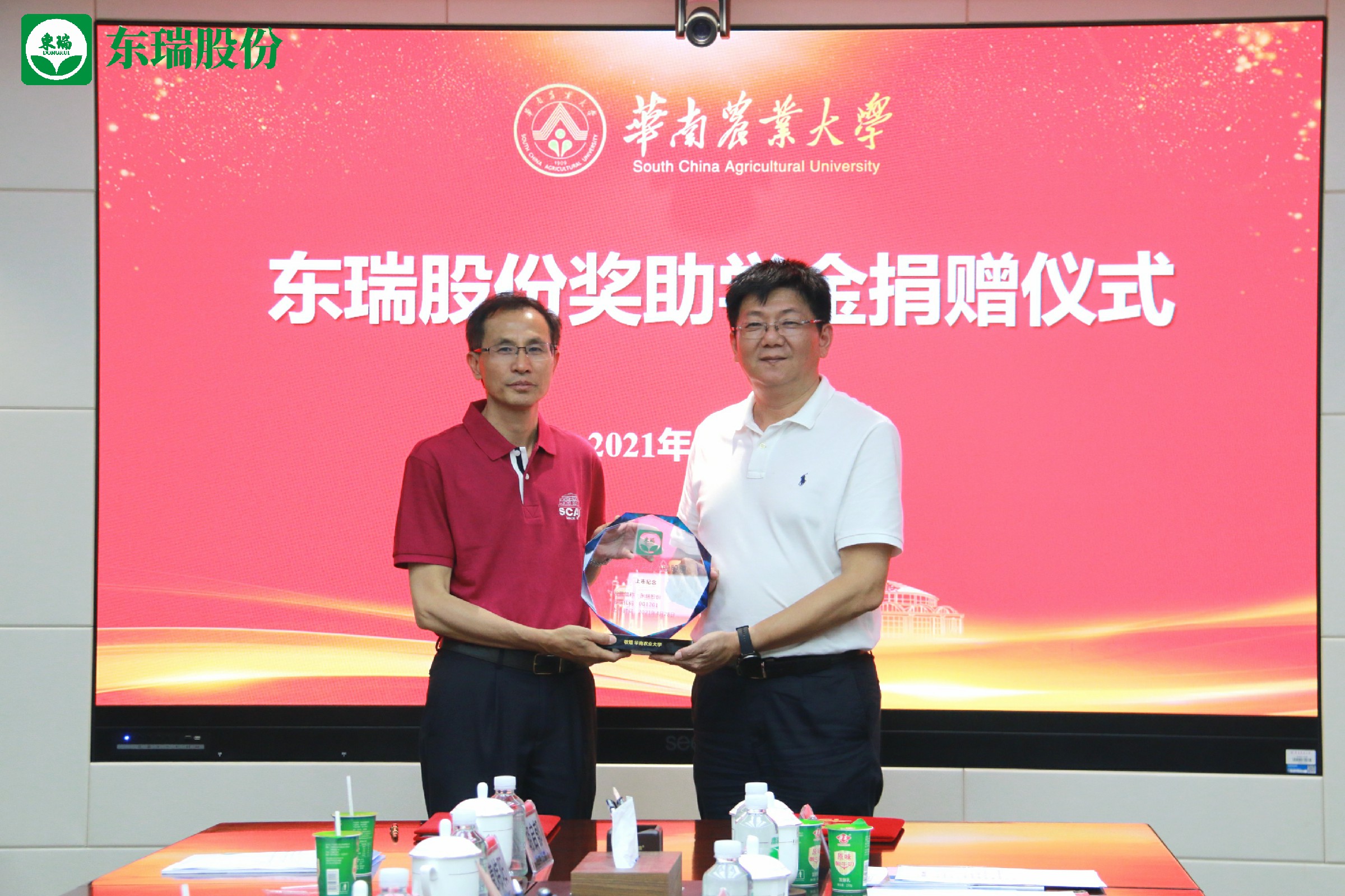 為促進(jìn)華南農(nóng)業(yè)大學(xué)畜牧獸醫(yī)教育事業(yè)發(fā)展,獎(jiǎng)勵(lì)和資助優(yōu)秀的大學(xué)生順利完成學(xué)業(yè),向社會(huì)培養(yǎng)更多更好的優(yōu)秀人才,東瑞食品集團(tuán)股份有限公司(下稱東瑞股份)向華南農(nóng)業(yè)大學(xué)獸醫(yī)學(xué)院、動(dòng)物科學(xué)學(xué)院捐贈(zèng)設(shè)立“東瑞獎(jiǎng)助學(xué)金”,5年共捐贈(zèng)人民幣100萬元。捐贈(zèng)儀式于5月10日下午在華南農(nóng)業(yè)大學(xué)(下稱華農(nóng)大)行政樓隆重舉辦。